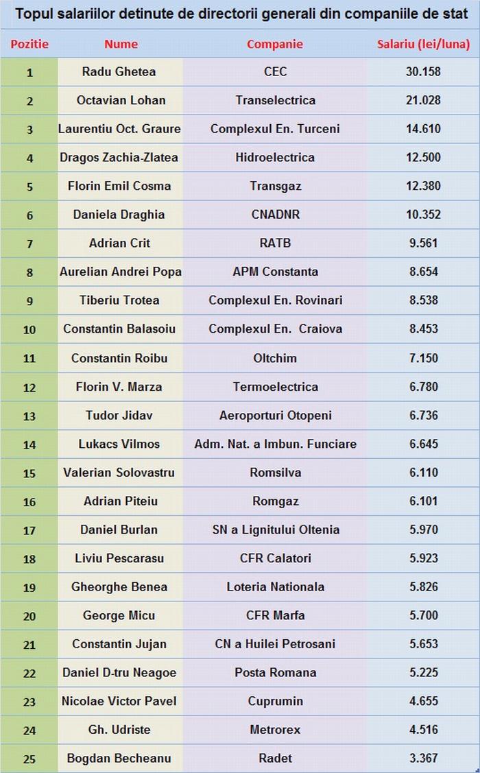 Timisoara Press Romania Topul Celor Mai Mari Salarii De Directori La Companiile De Stat