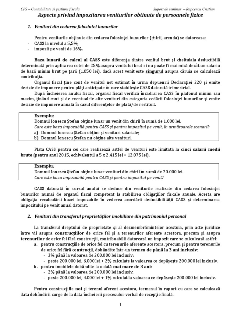 Mecanismul Fiscal Privind Impozitarea Veniturilor Din Inchirierea Bunurilor Obținute De Persoanele Fizice Ii