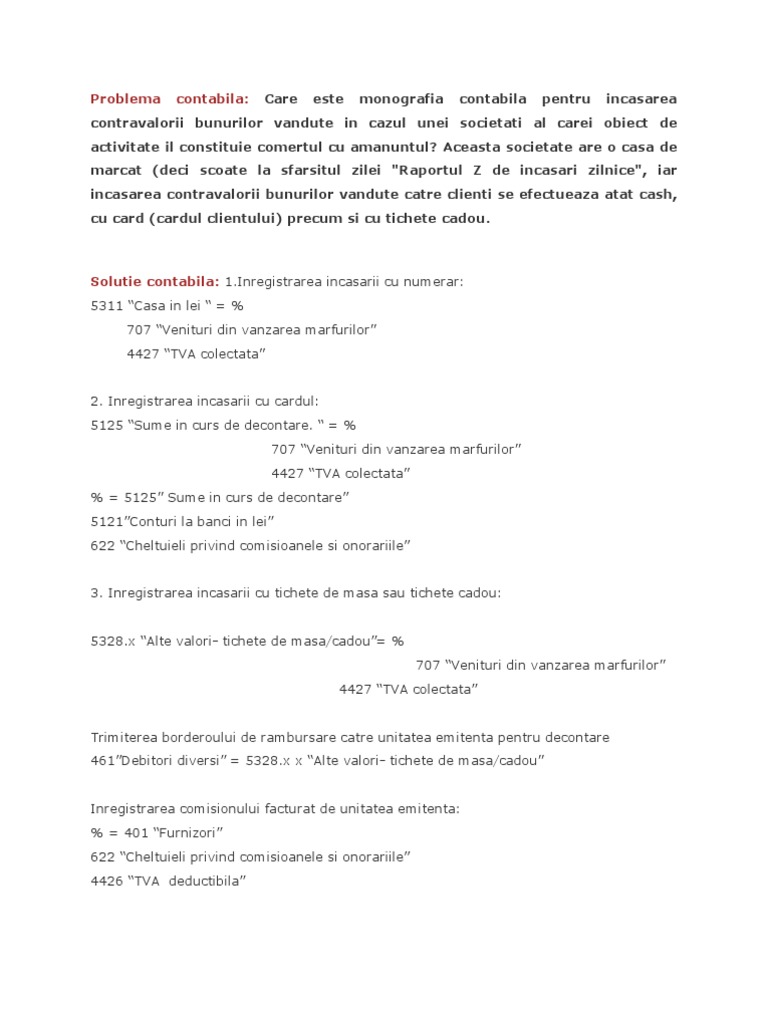 Monografie Contabila Tichete Cadou Primite De La Furnizori Audit Contabilitate Consultanta Analiza Your Choice Our Responsability