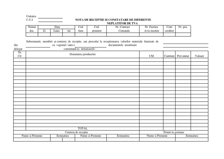 Nota De Receptie Si Constatare De Diferente Model Pdf