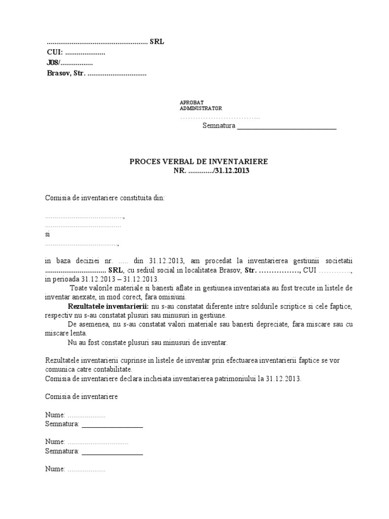 Model Proces Verbal De Valorificare A Rezultatelor Inventarierii La 31 12 2019 Necesar Pentru Dosar Inventar Anual Editabil Cabinetexpert Ro Blog Contabilitate