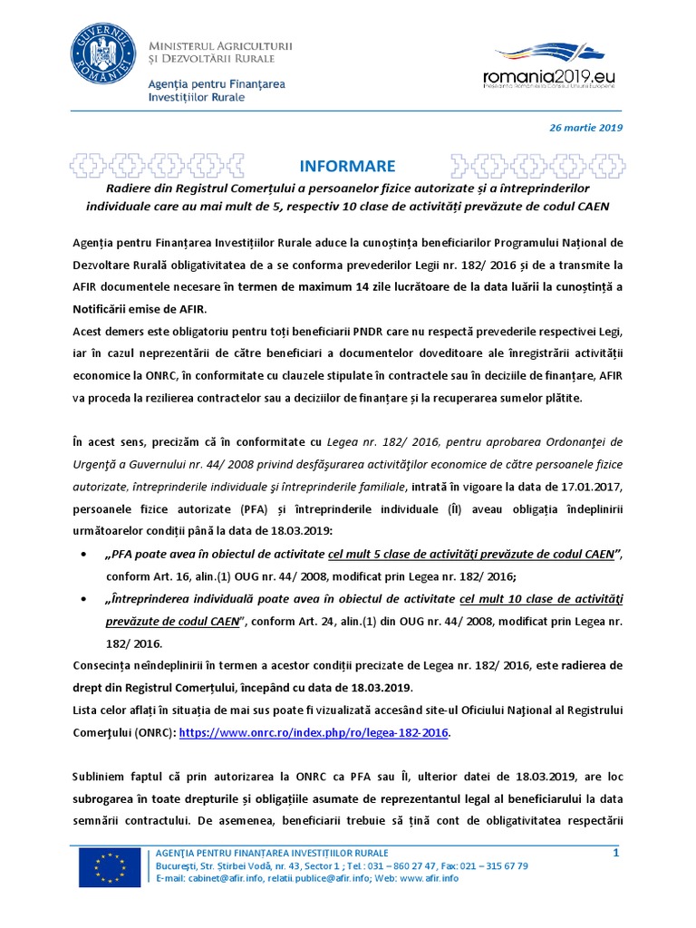 Informare 26 03 19 Radiere Pfa Ii Din Registrul Comertului