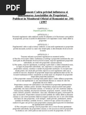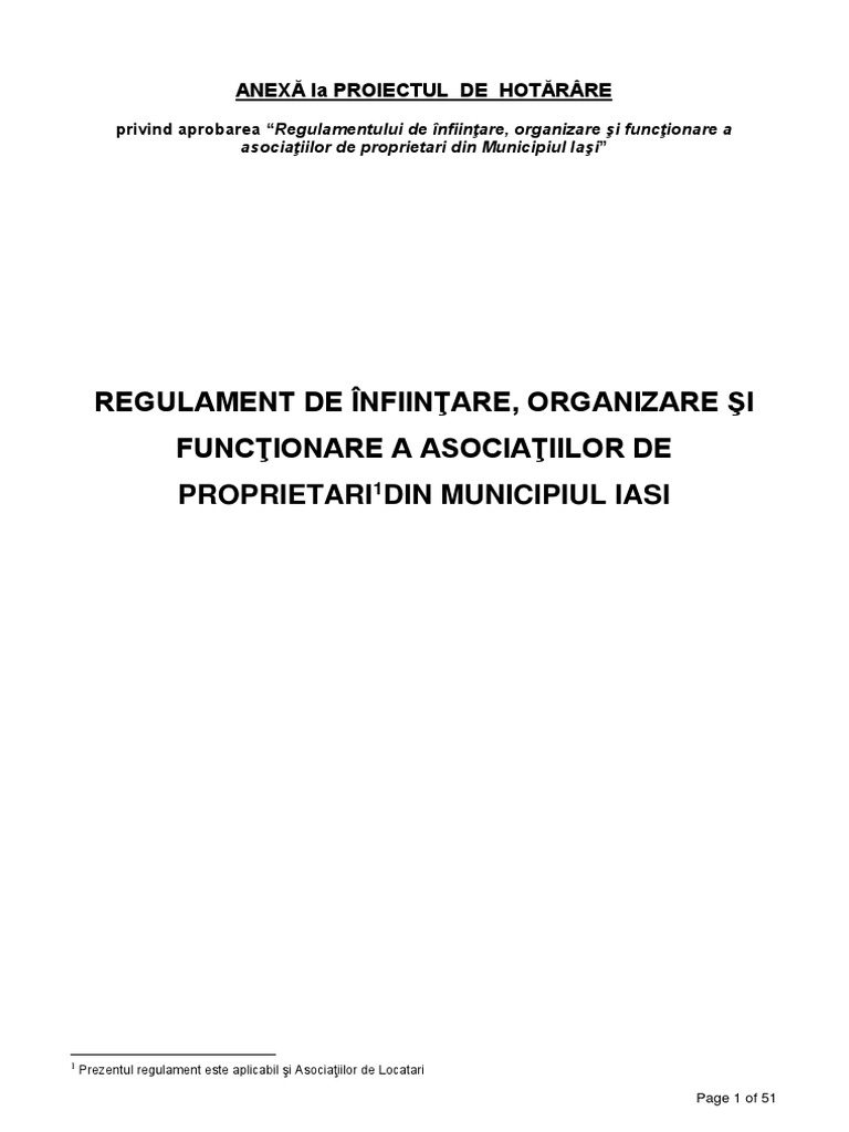 Regulament De Infiintare Organizare Si Functionare A Asociatiilor De Proprietari Locatari