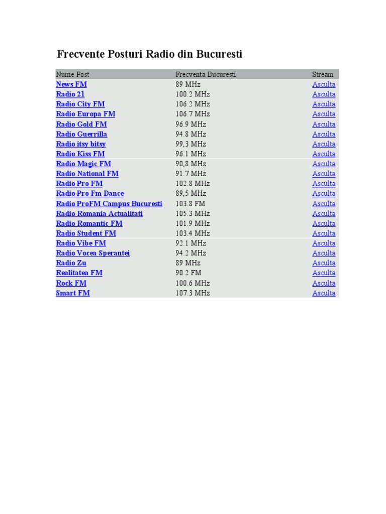Frecvente Posturi Radio Din Bucuresti Sound Production Technology Telecommunications Engineering