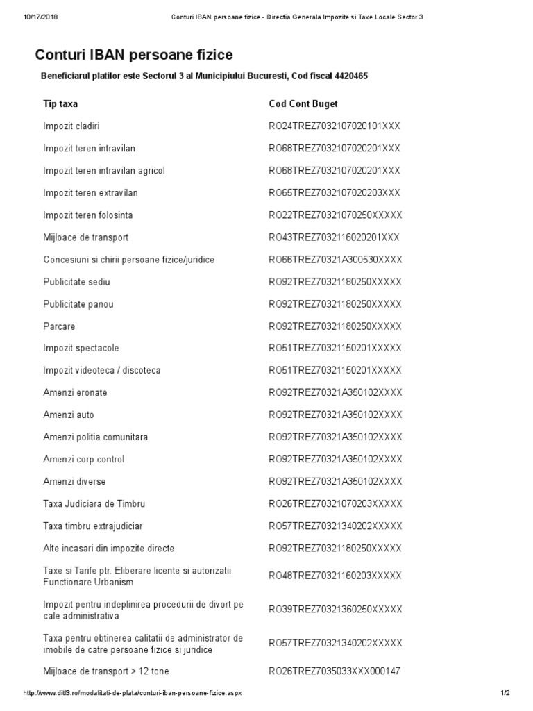Conturi Iban Persoane Fizice Directia Generala Impozite Si Taxe Locale Sector 3